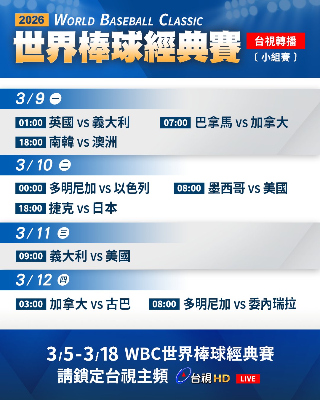 | 2026世界棒球經典賽轉播 | 直播平台 |