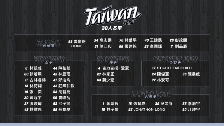 | 2026世界棒球經典賽 | 中華隊名單(30人) |
