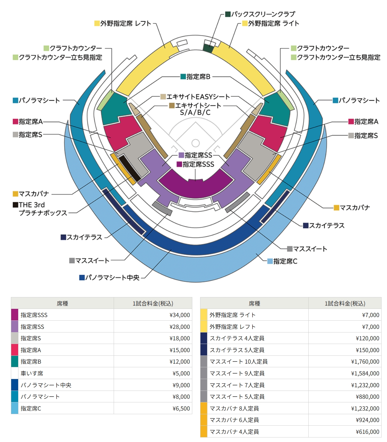 | 【含日本隊賽事】 3/6(五)19:00 中華台北 vs 日本 3/7(六) 19:00 韓國 vs 日本 3/8(日) 19:00 澳洲 vs 日本 3/10(二) 19:00 捷克 vs 日本 | 右外野座位7000日圓 左外野座位7000日圓 露臺座位(4人)12萬日圓 露臺座位(5人)15萬日圓 10人座位176萬日圓 |