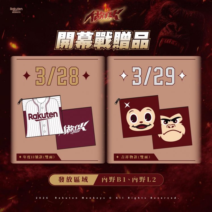 現在只要購買開幕戰任一場賽事門票,即可免費獲得贈品 ! 不同區域贈品不同,採限量發放,送完為止。