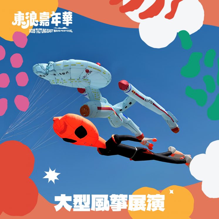 2026/5/16~5/17 13:00~17:00 有風箏展演活動,大型太空船、外星人等宇宙主題風箏將在空中放飛,為本次東浪嘉年華亮點 !