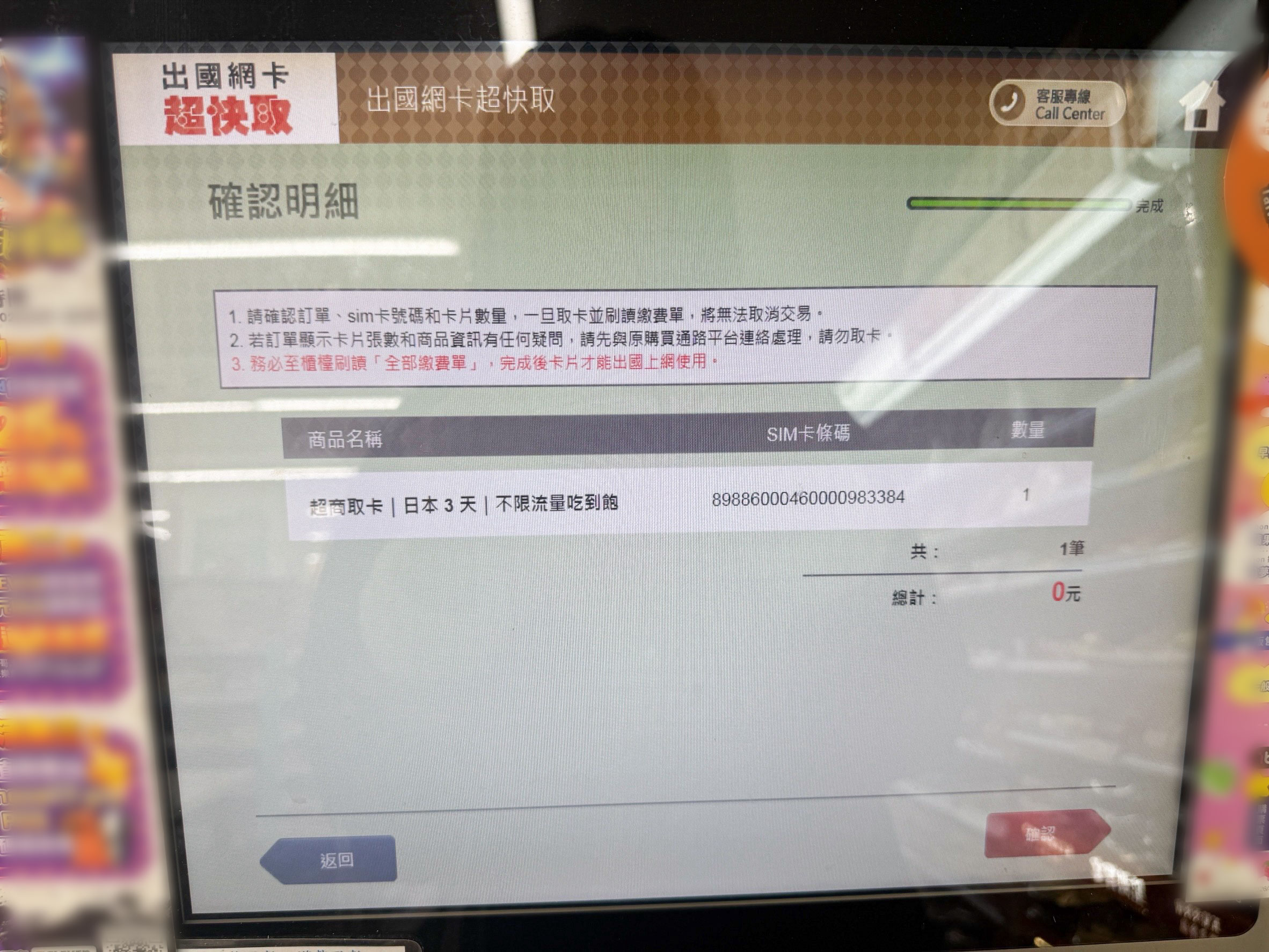 - 領取小白單並至櫃檯刷讀(0元取卡),即可出國插卡使用