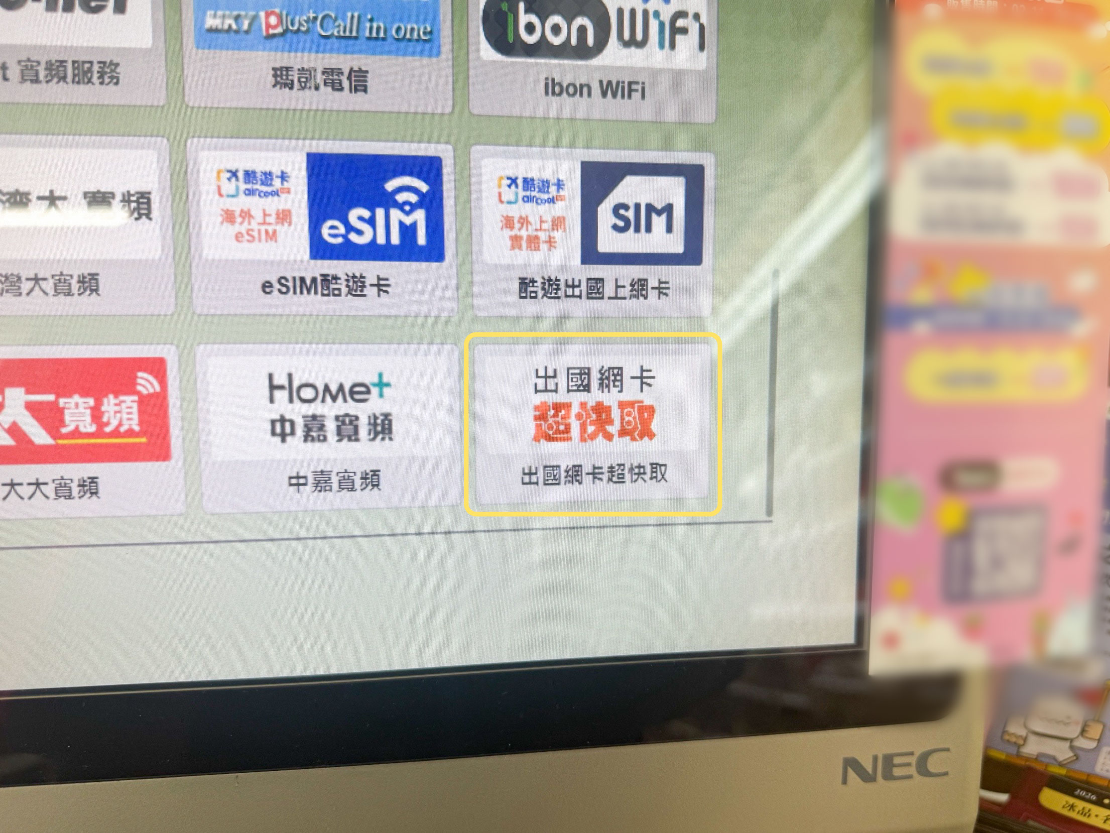 7-ELEVEN出國網卡的取卡方式也非常簡單,只要至合作品牌平台線上訂,於 ibon 機台操作取卡,再到櫃檯結帳開通即可。