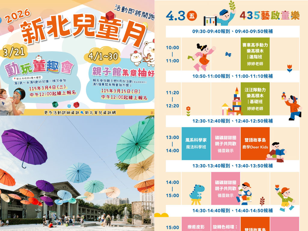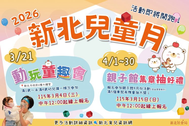 迎接兒童節連假,新北市政府於 2026 年 3 月 21 日起展開「2026新北兒童月」,讓親子開心玩 !