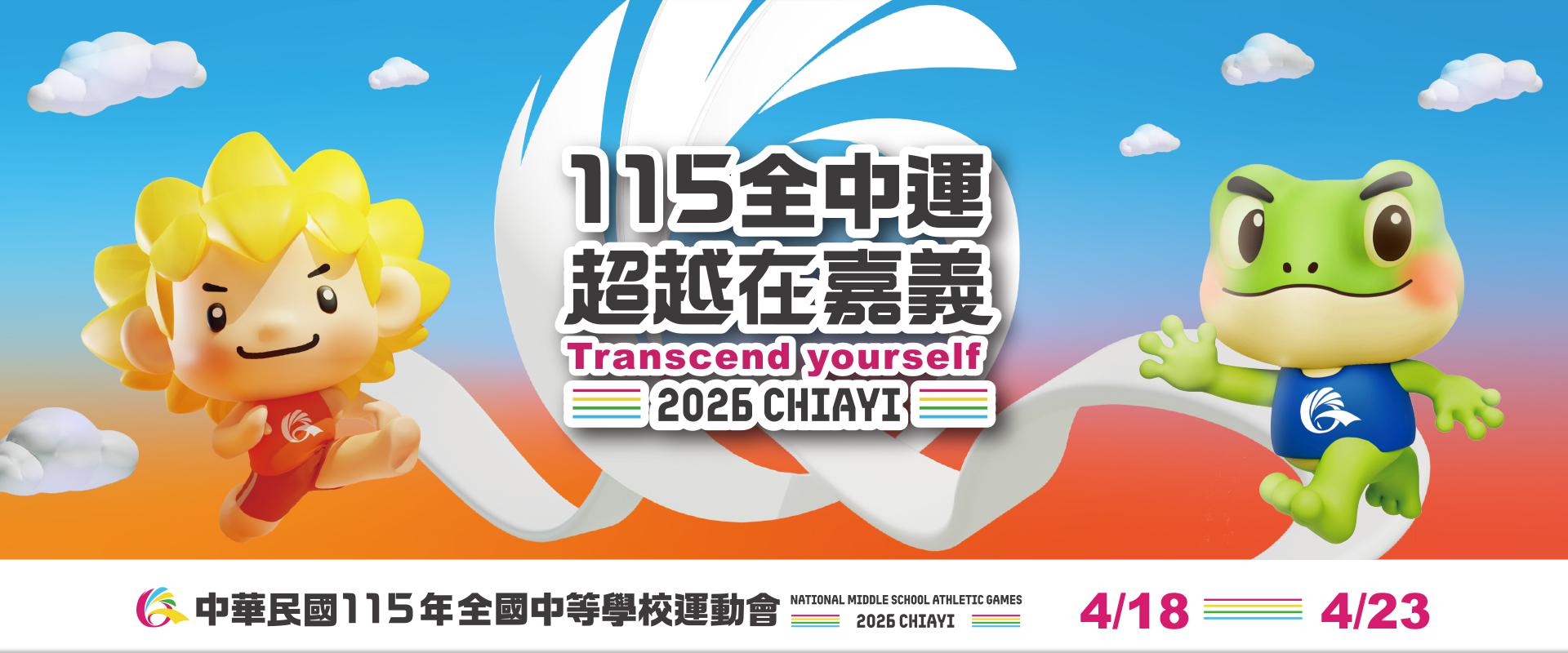 115 年全中運將在 2026 年 4 月 18 日至 4 月 23 日盛大展開,為期五天 ! 比賽地點以嘉義縣為主場,擴及高雄、台南、雲林、桃園、南投及新北,共有 1.8 萬名選手前來嘉義,為校爭取榮耀。