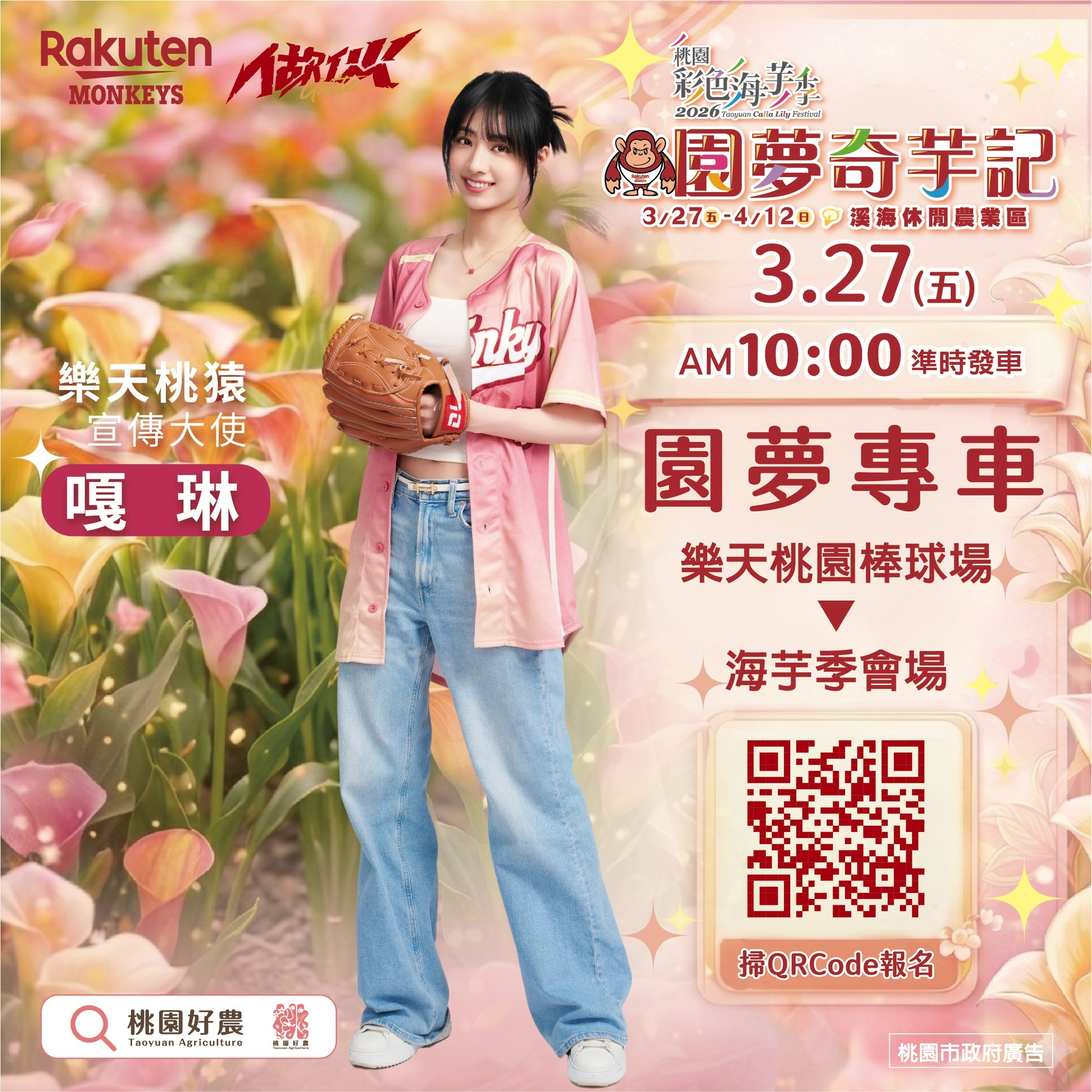 | 「搭乘園夢專車」活動 (採報名制,已額滿) | 3/27(五) 10:00 桃園棒球場→海芋季會場 |