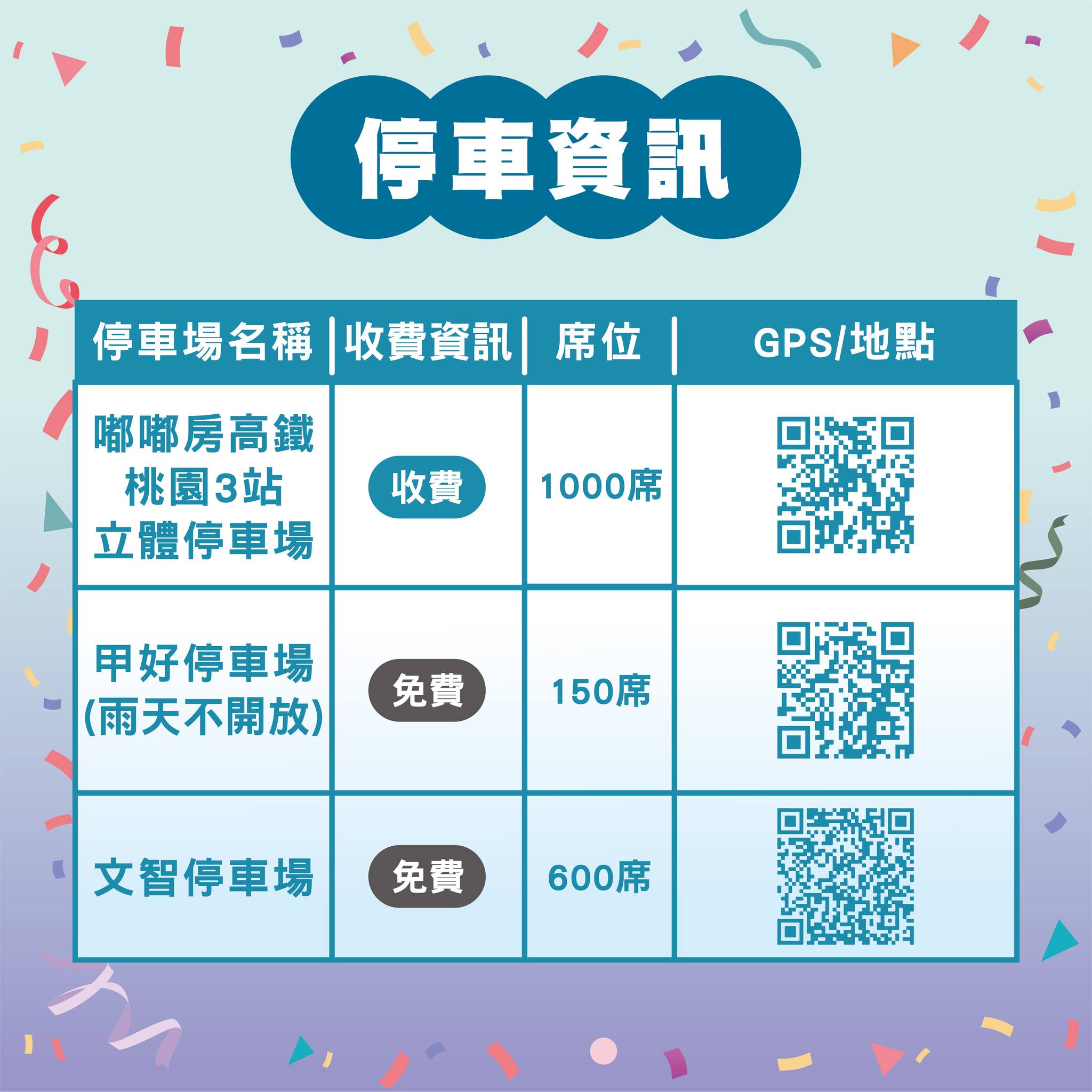 附近免費的停車場有甲好停車場、文智停車場,可將車子停放在此,再步行抵達活動會場。