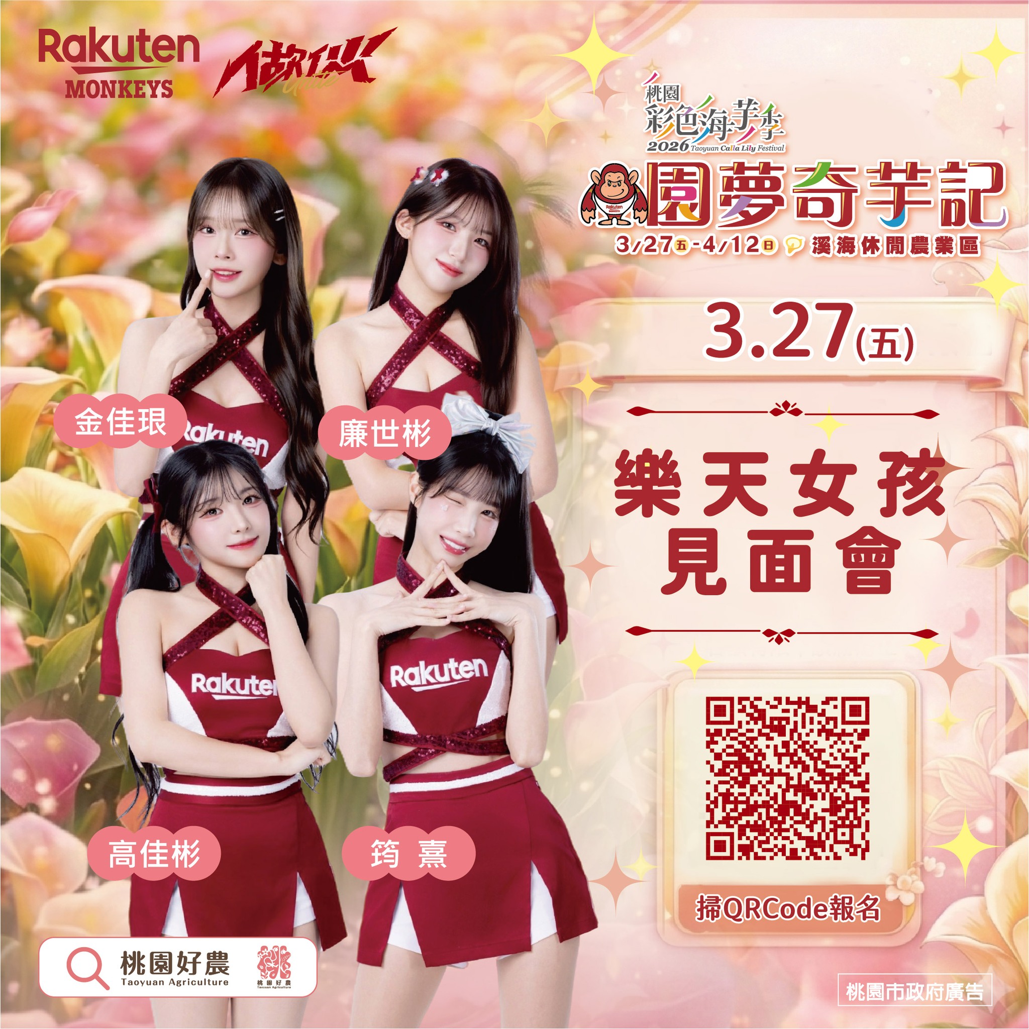 | 樂天女孩見面會 (採報名制,已額滿) | 3/27(五) 10:00-12:30 溪海休閒農業區(聖德北路與田溪路交叉口)舞台區 |