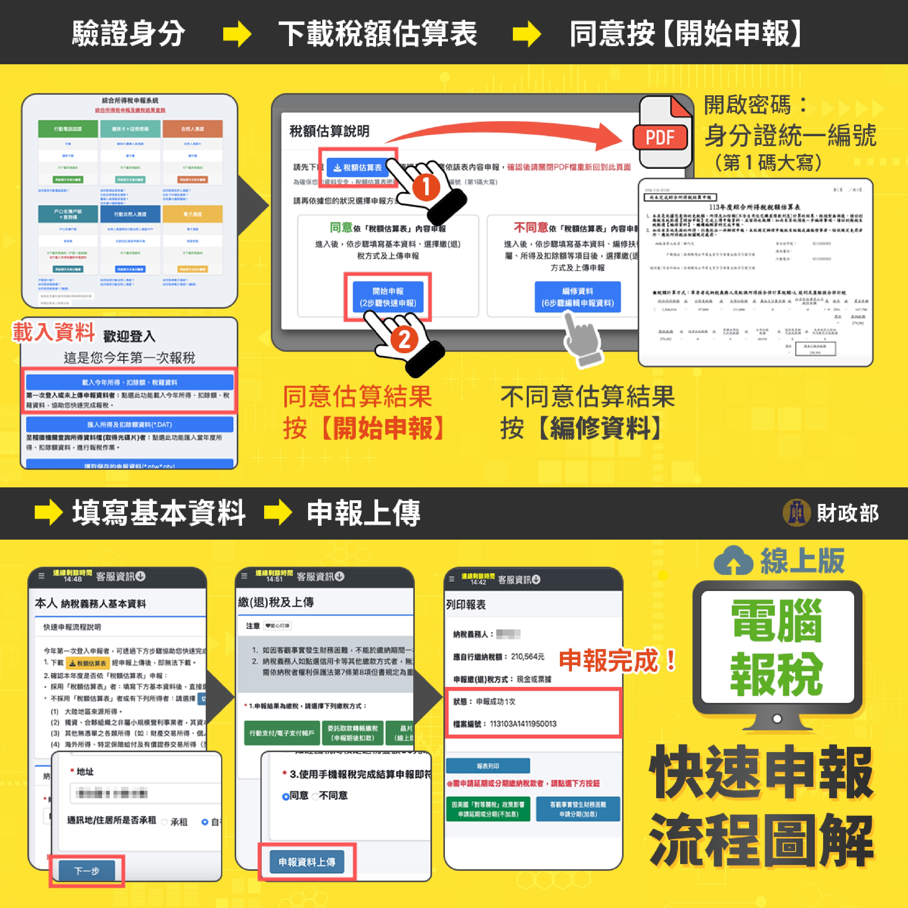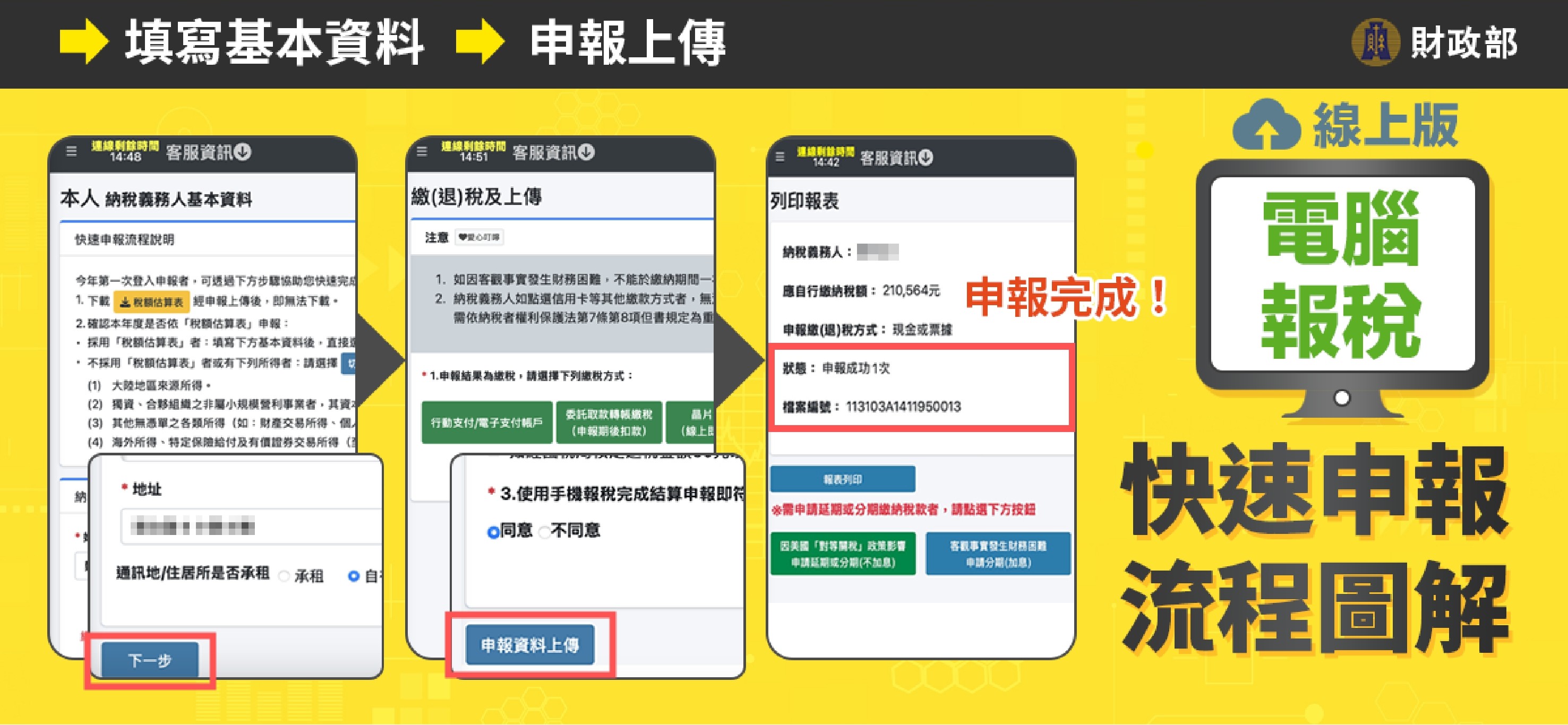 - 報稅方式:財政網站、手機報稅網頁、離線版軟體