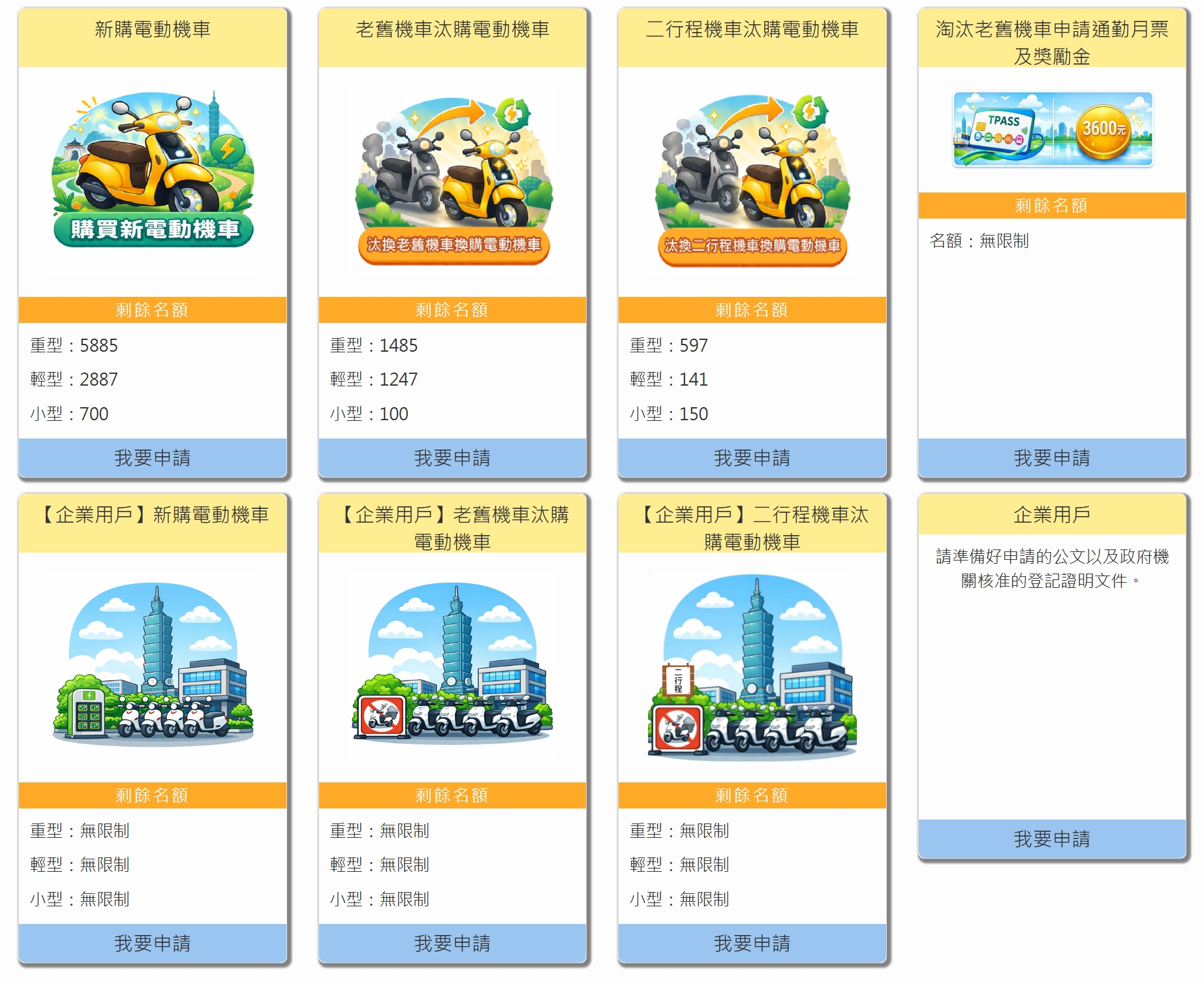 - 新購定義:新購買且首次領牌照車籍登記在台北市的電動機車。