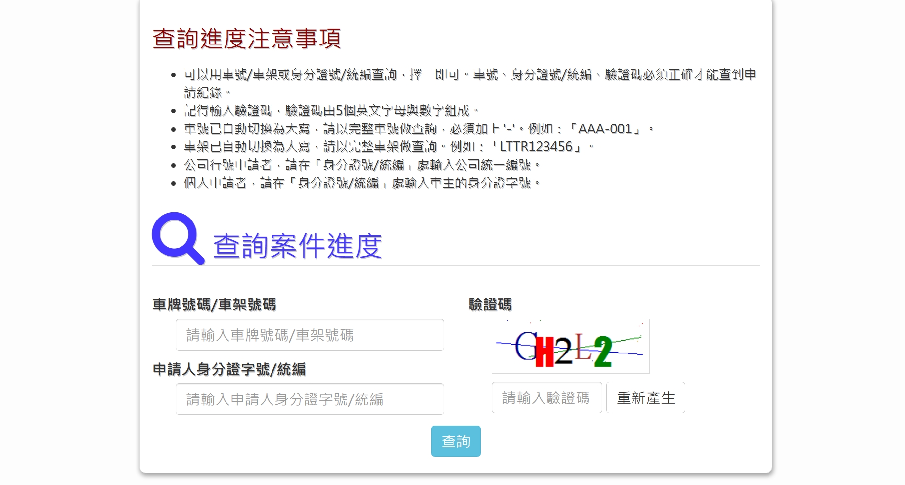 - 將資料送出,即完成申請。欲查詢補助審核進度,可至台北市環保局網站,填寫車牌號碼、身分證字號及驗證碼查詢。