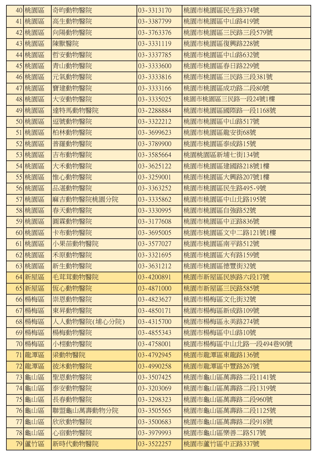 | 東沅動物醫院 | 關西鎮中山東路212號 | 03-587-8878 |