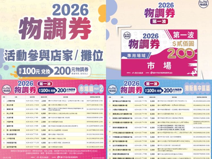 【2026台中物調券】發放地點/時間/使用店家/優惠,100元換200元!