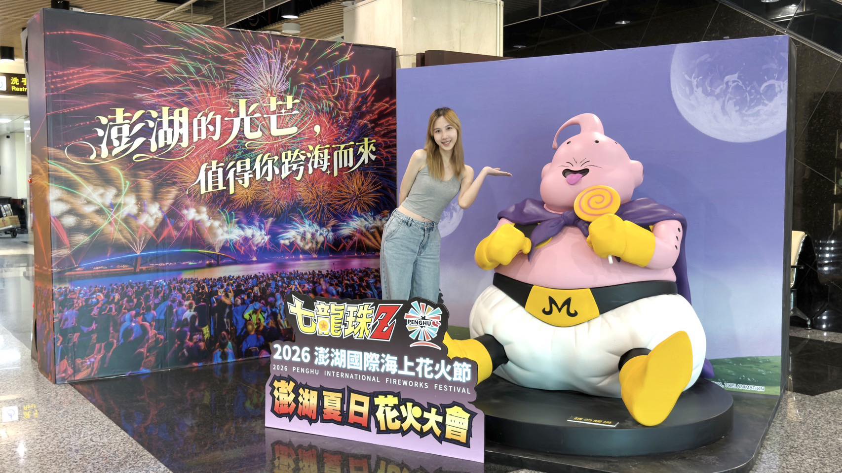 澎湖機場也設置了大型「普烏」公仔,讓大家一下飛機就能感受到花火節的氛圍 ! 後續觀音亭主會場、跨海大橋、山水高地等地也將設置打卡點,七龍珠迷們別錯過 !