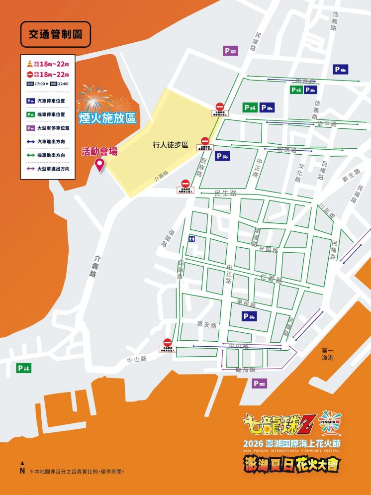 配合活動,介壽路、民族路及周邊部分區域將實施交通管制,期間汽、機車禁止進入;管制時間如下。