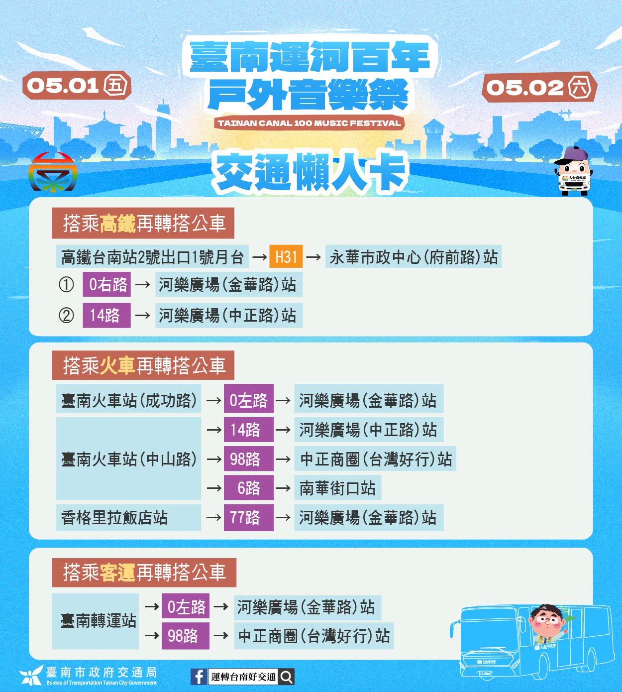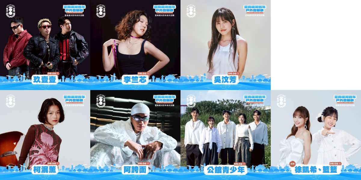 歡慶台南運河百年,台南市政府將在 2026 年 5 月 1 日及 5 月 2 日舉行戶外音樂祭,邀請超多歌手前來演出,免費入場 !