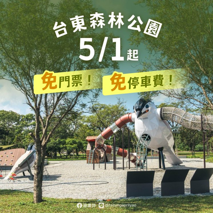 台東森林公園占地 280 公頃,擁有兒童遊戲場、優美湖畔與自行車道,是許多市民休閒的好去處。今年 5/1 勞動節開始,入園免門票,停車也免費 !