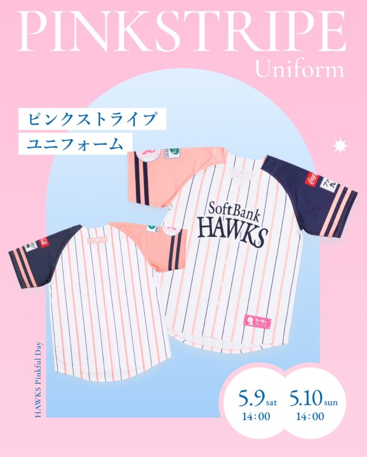 現在購買 5/8~5/10 福岡軟銀鷹主場球賽門票,入場可獲得限量 Hello Kitty 印花棒球衣或粉白棒球衣,有打算看日本職棒的朋友可以趁著這個機會把它帶回家 !