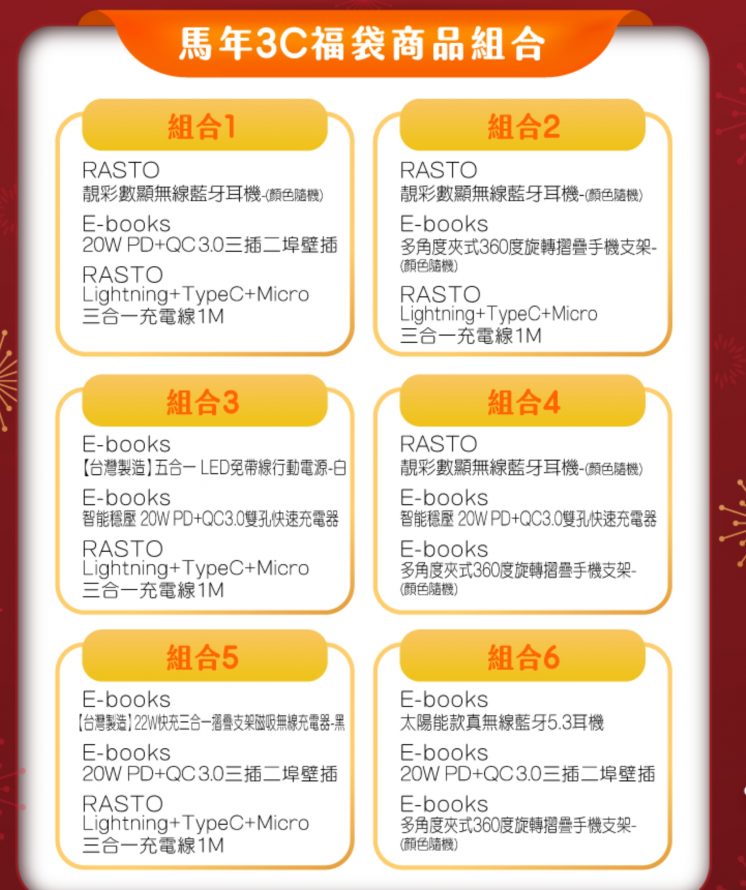 | 3C資訊福袋 | 799元 | 12/24~2/22 | 3000包 |