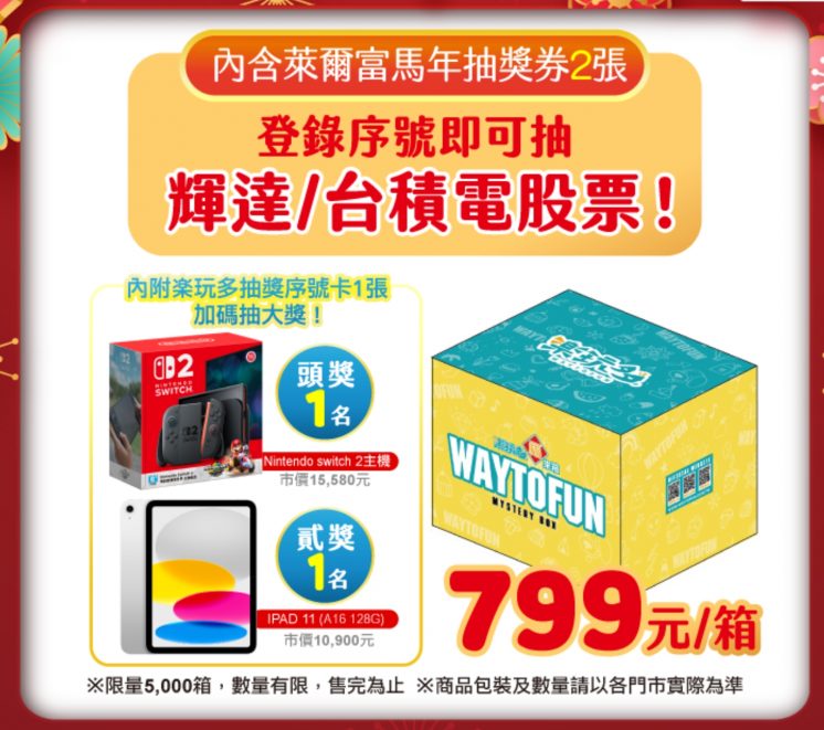 2026萊爾富馬年福袋、發財卡開賣,抽台積電、輝達股票!