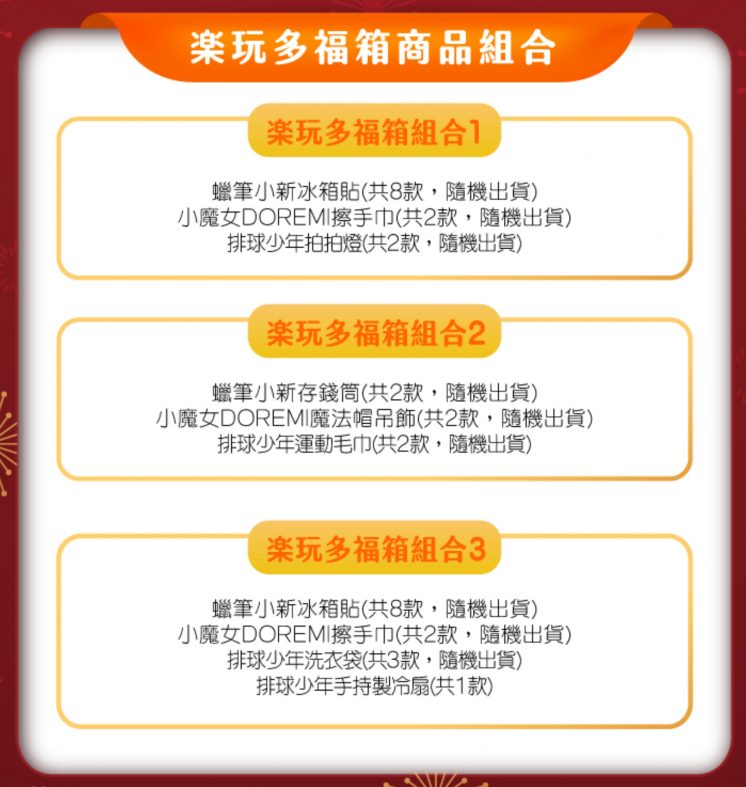 | 馬年福箱 樂玩多福箱 | 799元 | 12/24~2/22 | 8000箱 |